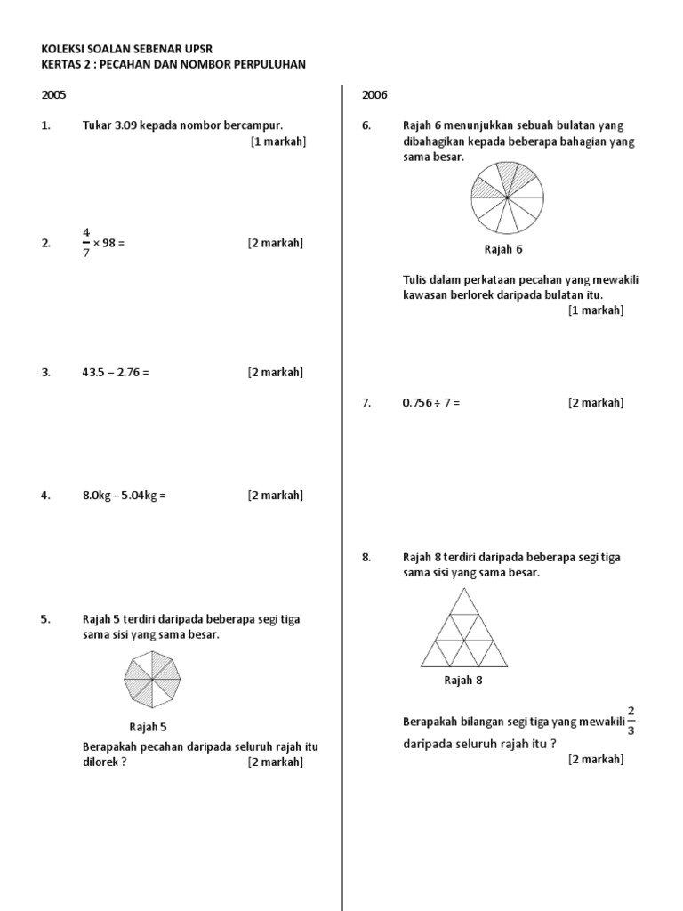 Koleksi Soalan Upsr Sebenar Pecahan Nombor Perpuluhan Pdf