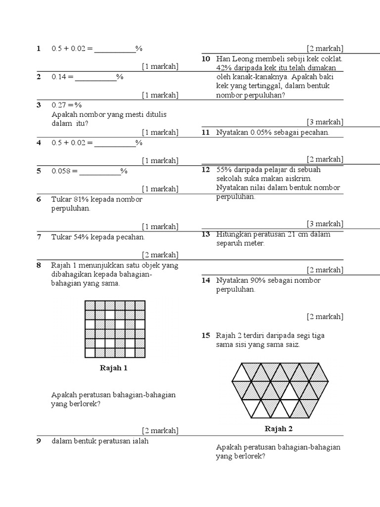 Soalan Matematik Tahun 5 Pecahan Perpuluhan Dan Peratus